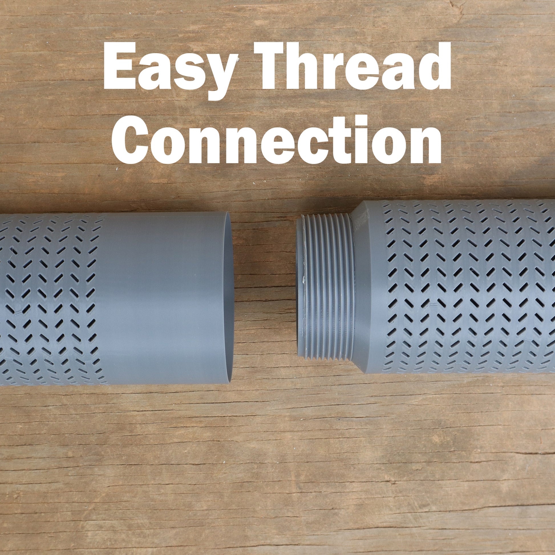 - Universal threaded bushing system – The filter end comes pre-installed with heavy-duty threaded bushings that let you connect directly to 1/2", 3/4", 1", or 1-1/4" pipe, hose, or pump fittings. The threaded end allows you to use adapters for poly pipe or PVC pipe.